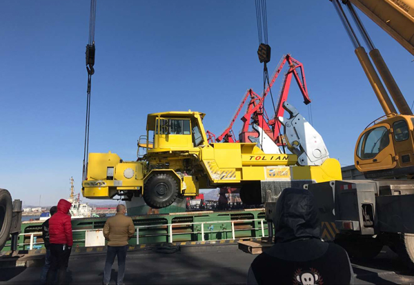 由通聯(lián)科技自助研發(fā)設計生產(chǎn)的100t抱罐車于今天裝船完畢,近日將發(fā)運到韓國。